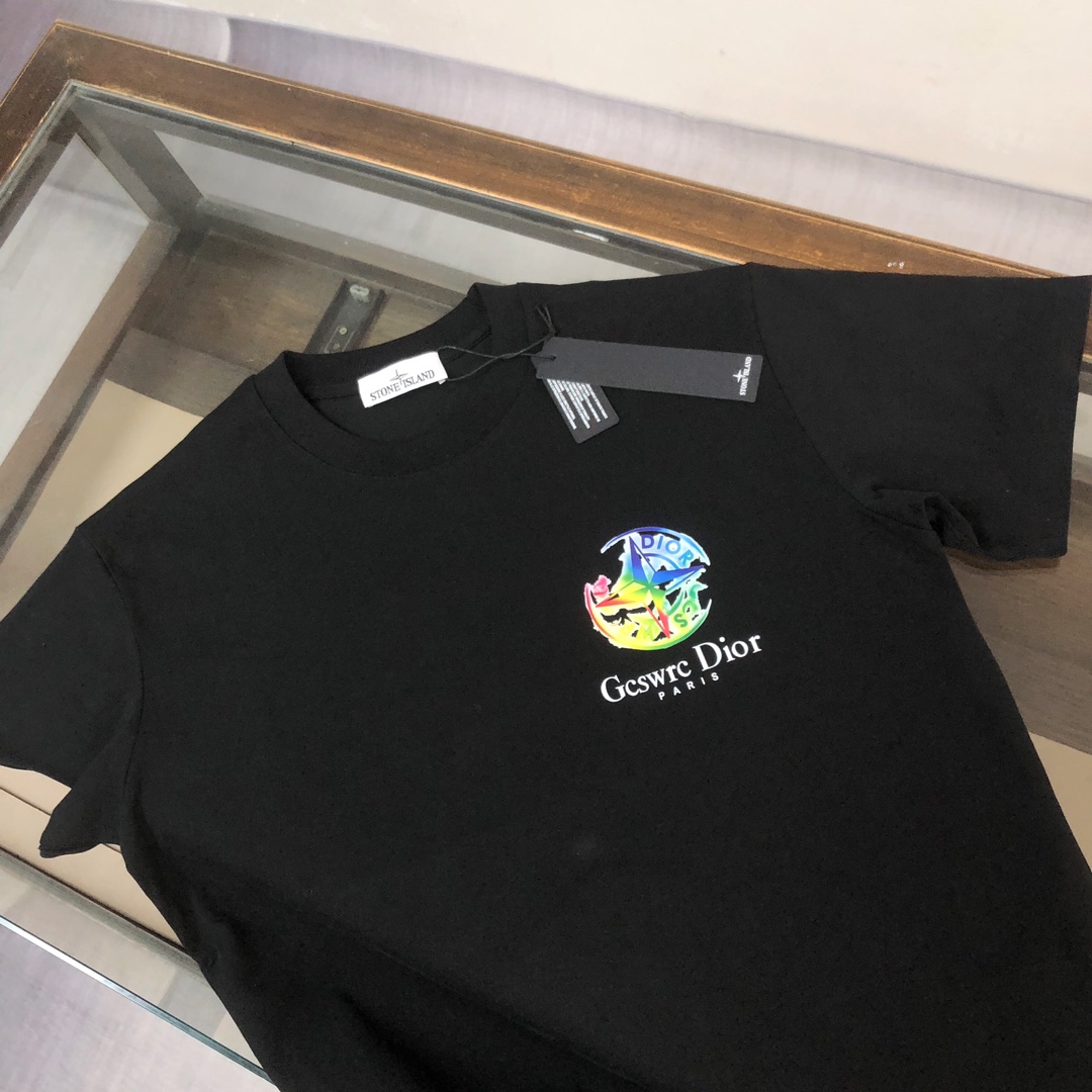 Stone Island & DIOR Unisex Cổ tròn Áo thun tay ngắn