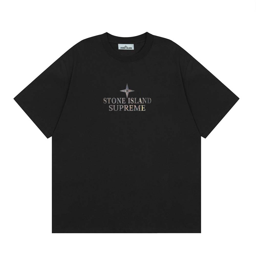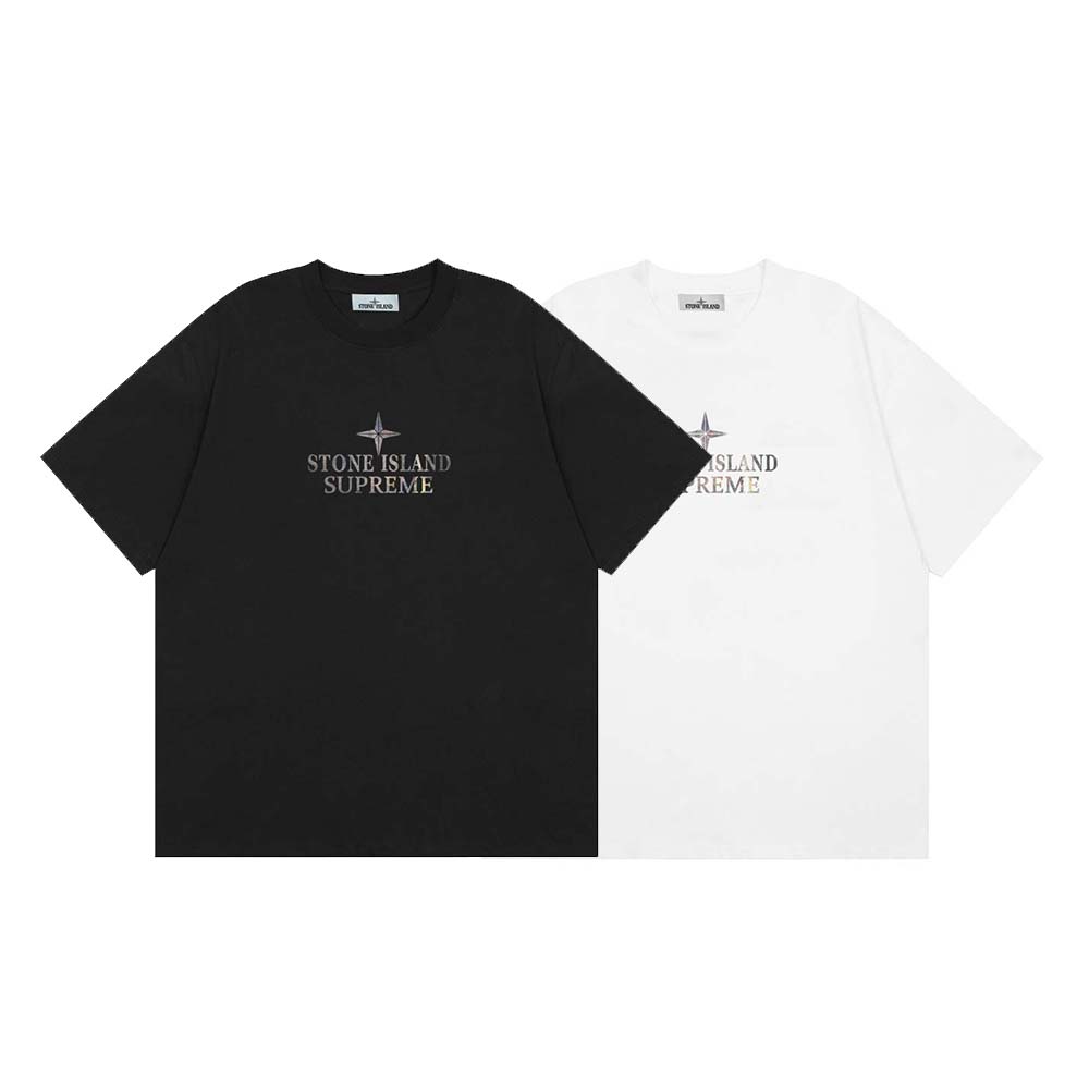 Stone Island Unisex Cổ tròn Áo thun tay ngắn 2COLOR