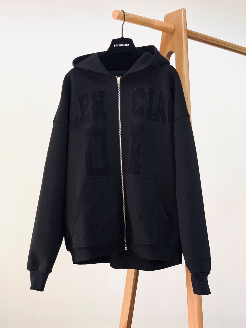 BALENCIAGA Unisex kéo khóa hoodie Áo khoác
