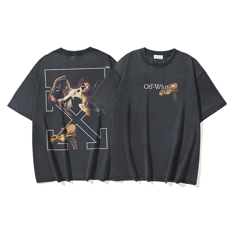 OFF WHITE Unisex Cổ tròn Áo thun tay ngắn