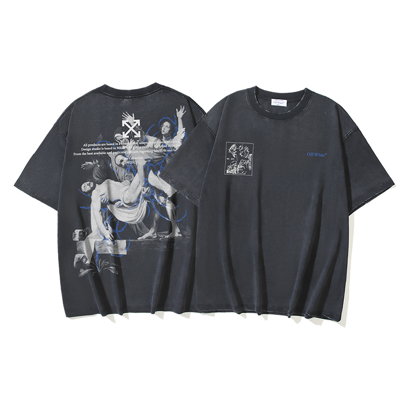 OFF WHITE Unisex Cổ tròn Áo thun tay ngắn