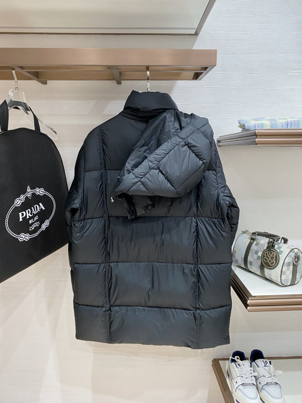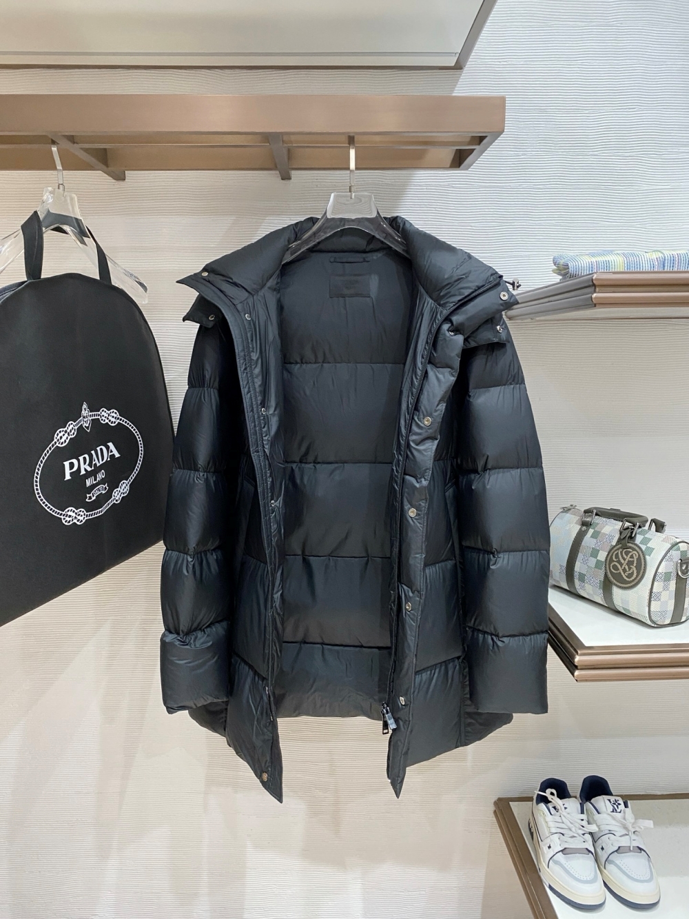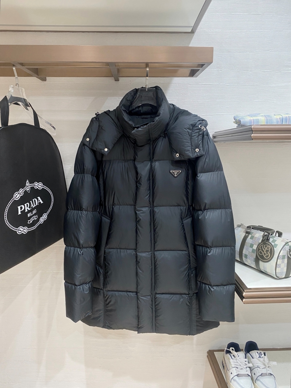 PRADA Unisex hoodie Áo phao dáng dài