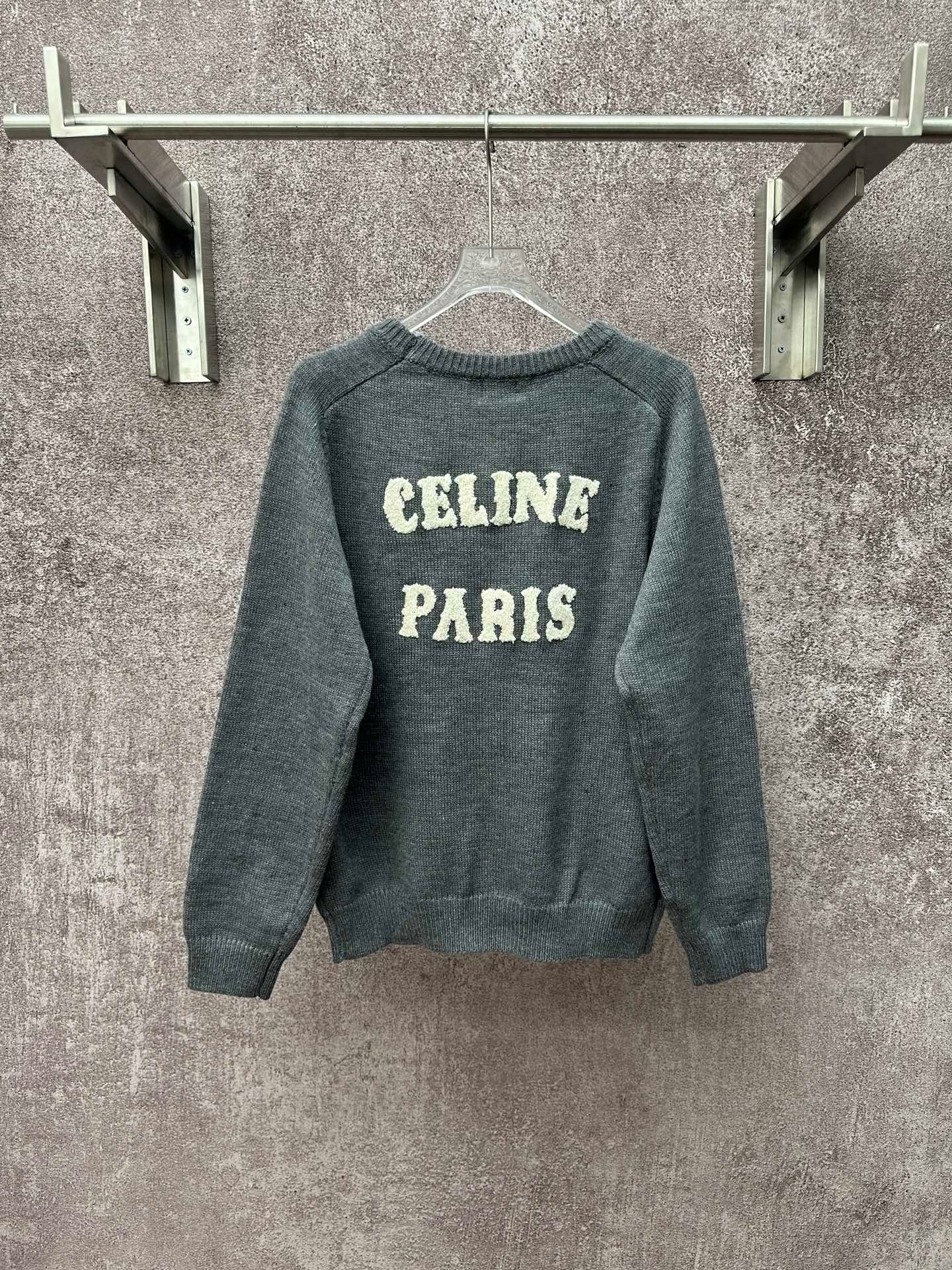 CELINE Unisex len Áo nỉ cổ tròn