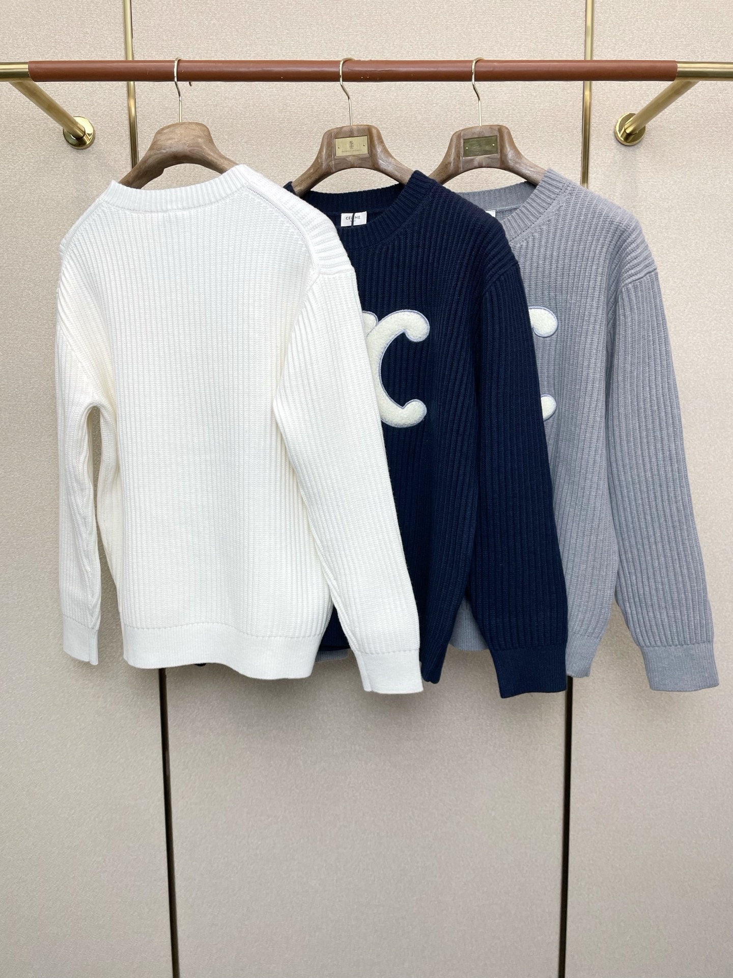 CELINE Unisex len Áo nỉ cổ tròn 3COLOR