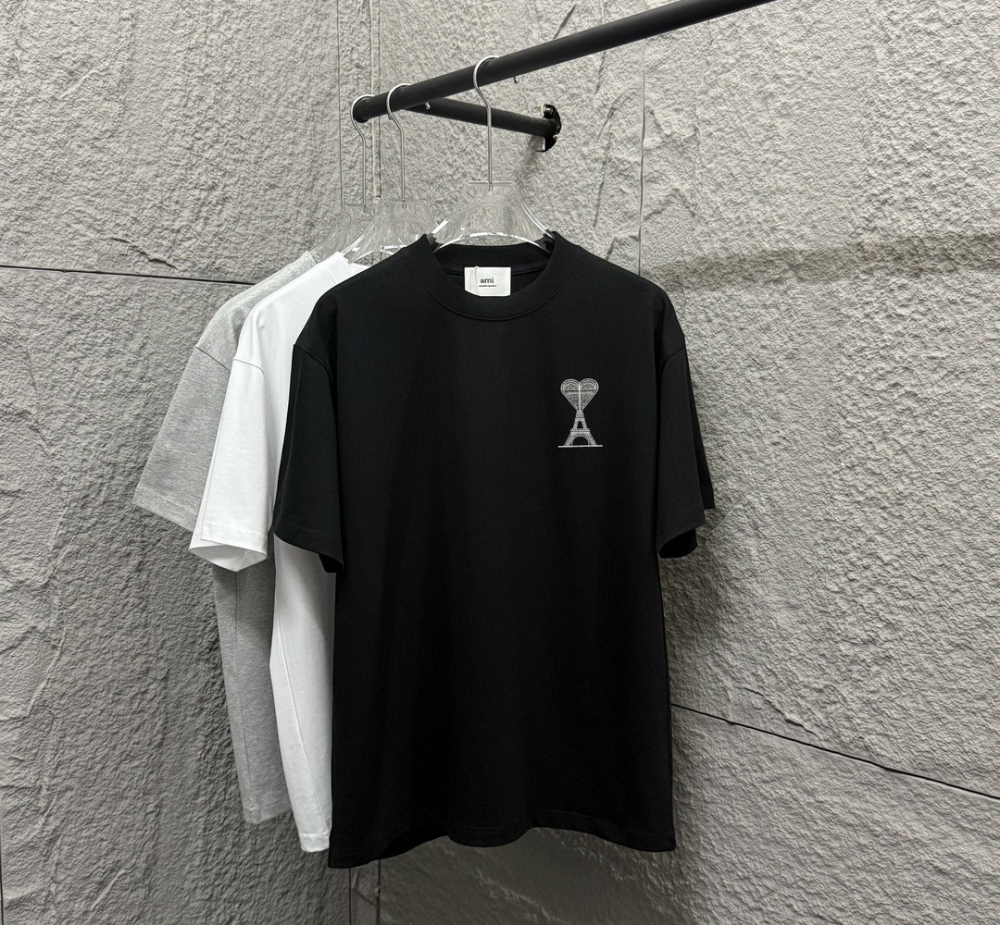AMI Unisex Cổ tròn Áo thun tay ngắn