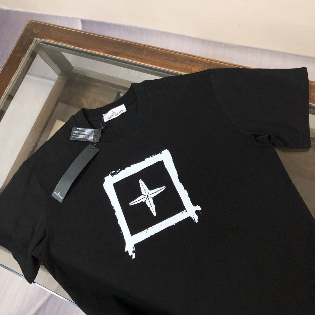 Stone Island Unisex Cổ tròn Áo thun tay ngắn
