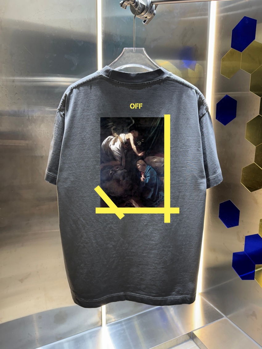 OFF WHITE Unisex Cổ tròn Áo thun tay ngắn