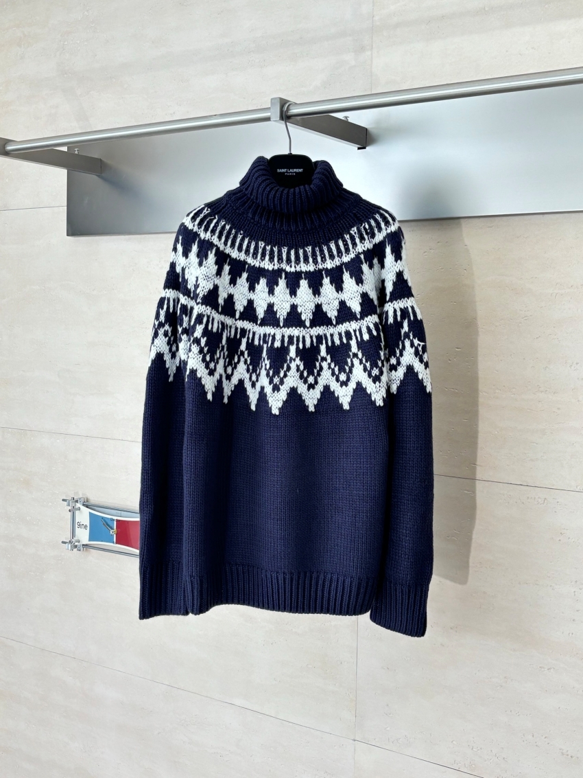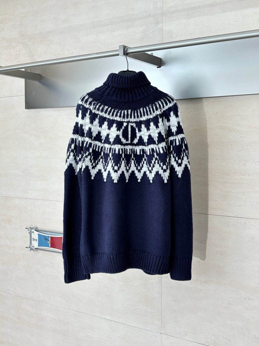 Dior Unisex Tay dài len Áo cổ lọ Áo len