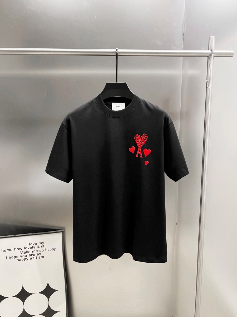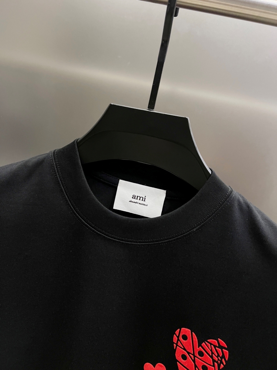 AMI Unisex Cổ tròn Áo thun tay ngắn